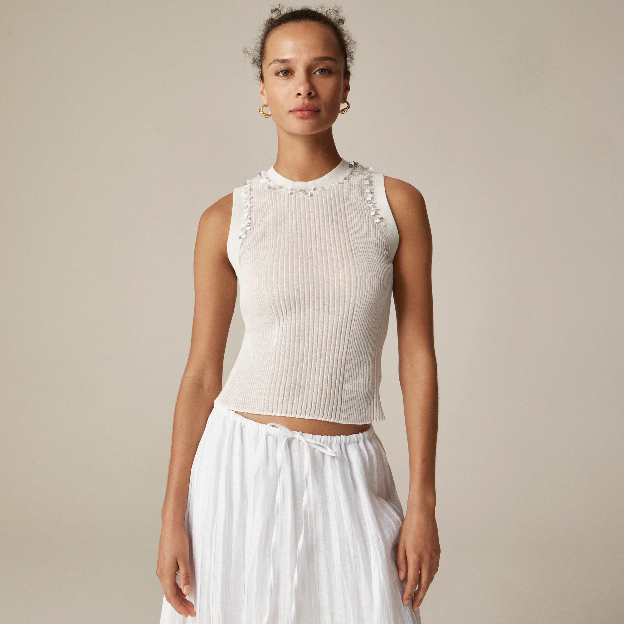 For honeymoons, bridal festivities and beyond. Trimmed with playful ruffles and embellished with light-reflecting paillettes, this airy cotton gauze style has a romantic look that's just right for all kinds of extra-special occasions.