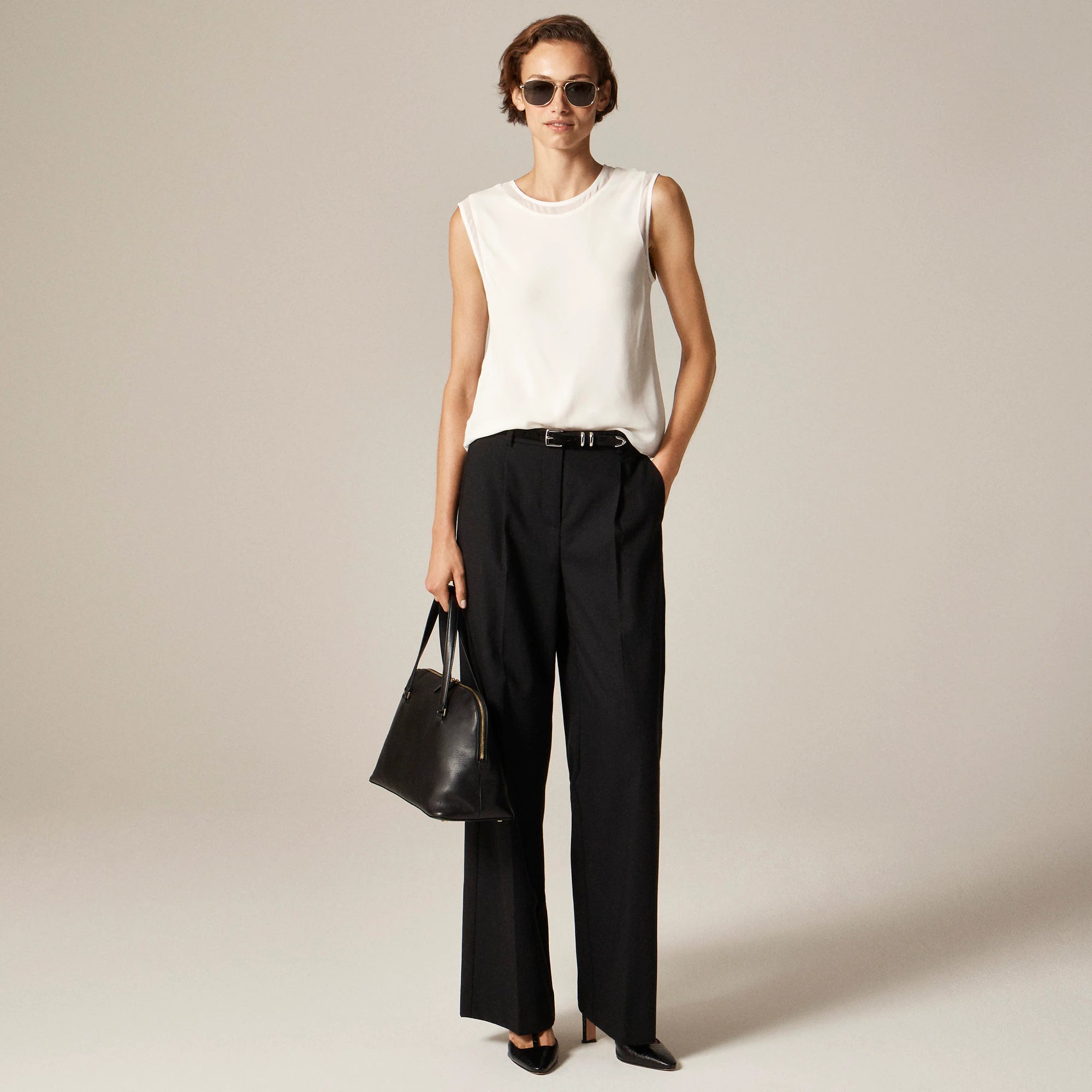 A dressier take on a throw-on-and-go. This sleeveless top is designed in an easy silhouette that feels polished enough for work but relaxed enough for everything after. Made from airy 100 percent viscose chiffon with a softly structured drape and sheer paneling details along the hem and sleeves.