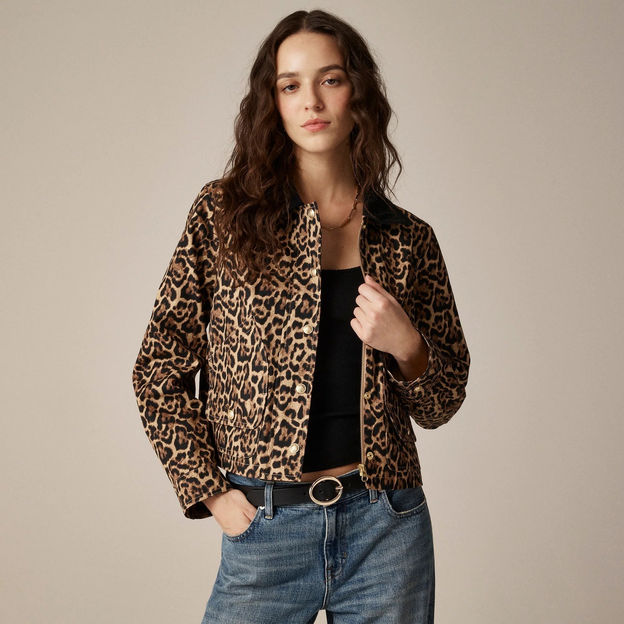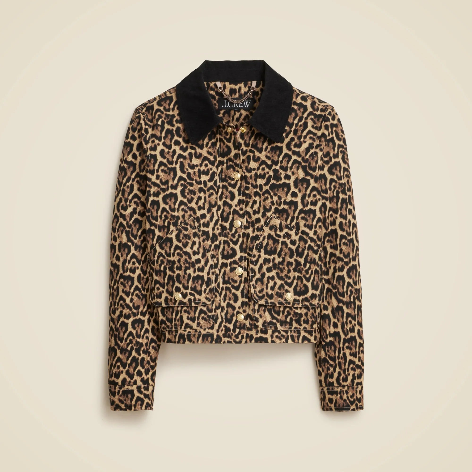 A J.Crew icon since 1983. . .Always evolving, we updated this version with a cropped fit that hits at the hips, gold crest button details and oversized, multifunctional patch pockets. Plus, this one comes in a timeless and trending leopard print that pops.