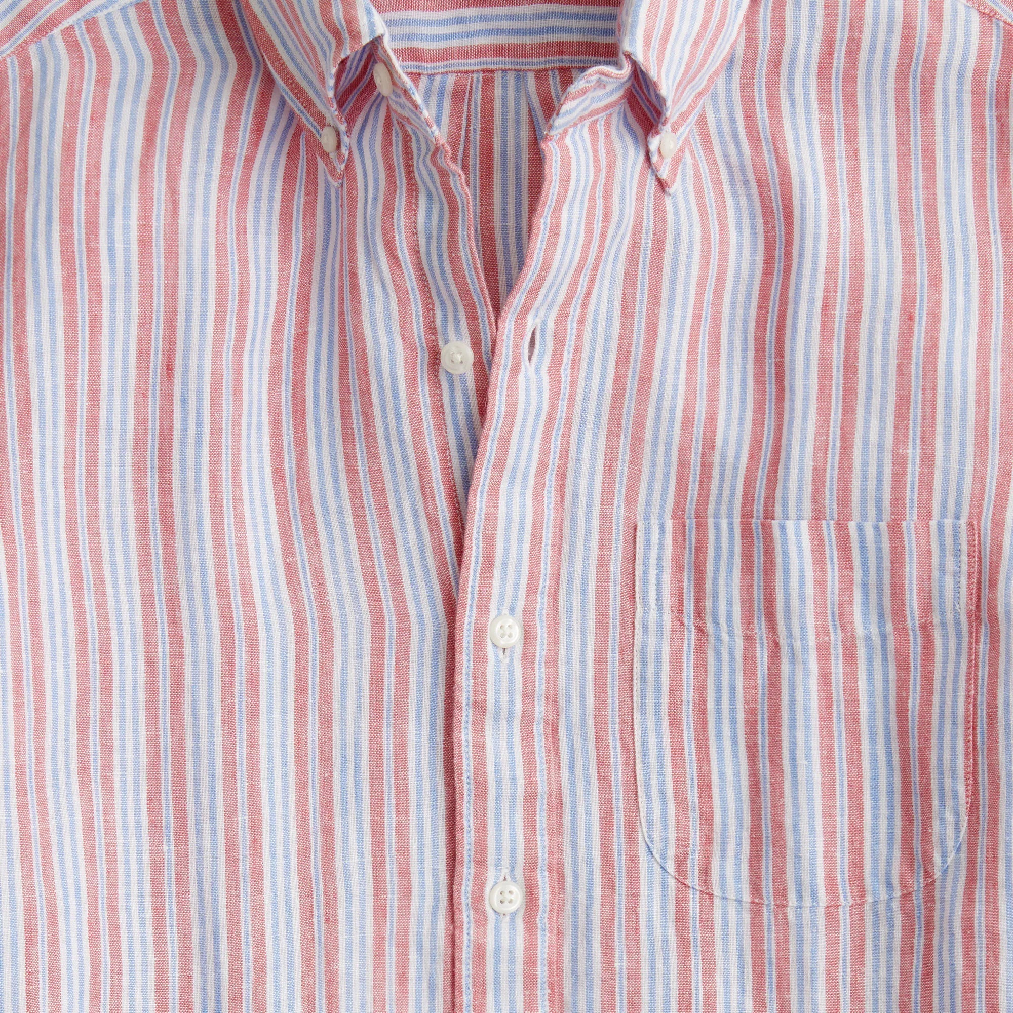 We sourced our linen from Ireland's Baird McNutt mill. . . Irish linen is considered to be the world's finest and Baird McNutt's, the finest in Ireland. It has an incredible softness, thanks to a weaving process that the mill has been perfecting since 1912. It's what makes this shirt a summer essential when you need to stay cool and look polished but not too polished—linen wrinkles easily and actually looks best with a few creases. (Please note: Due to the sewing and cutting process, some patterns may vary slightly from what is pictured, so no two are exactly alike.)