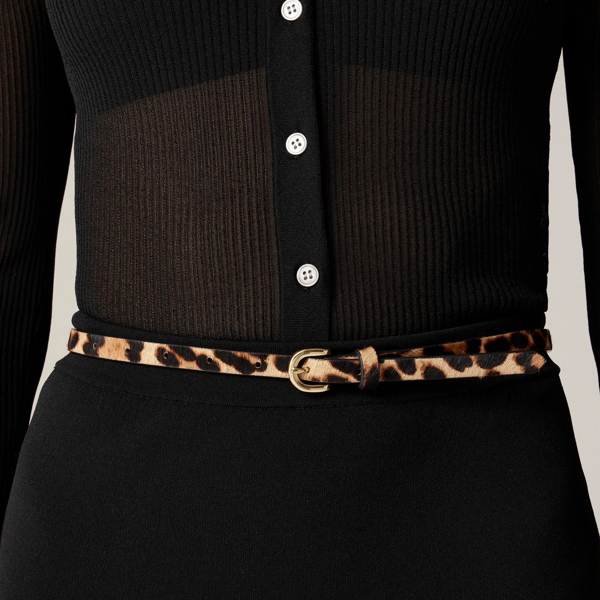 This skinny belt with custom-developed hardware is exactly what your jeans have been missing. It's made in luxe Italian calf hair, which features a leopard print. (You'll find leopard throughout our collection because we love it so much.)