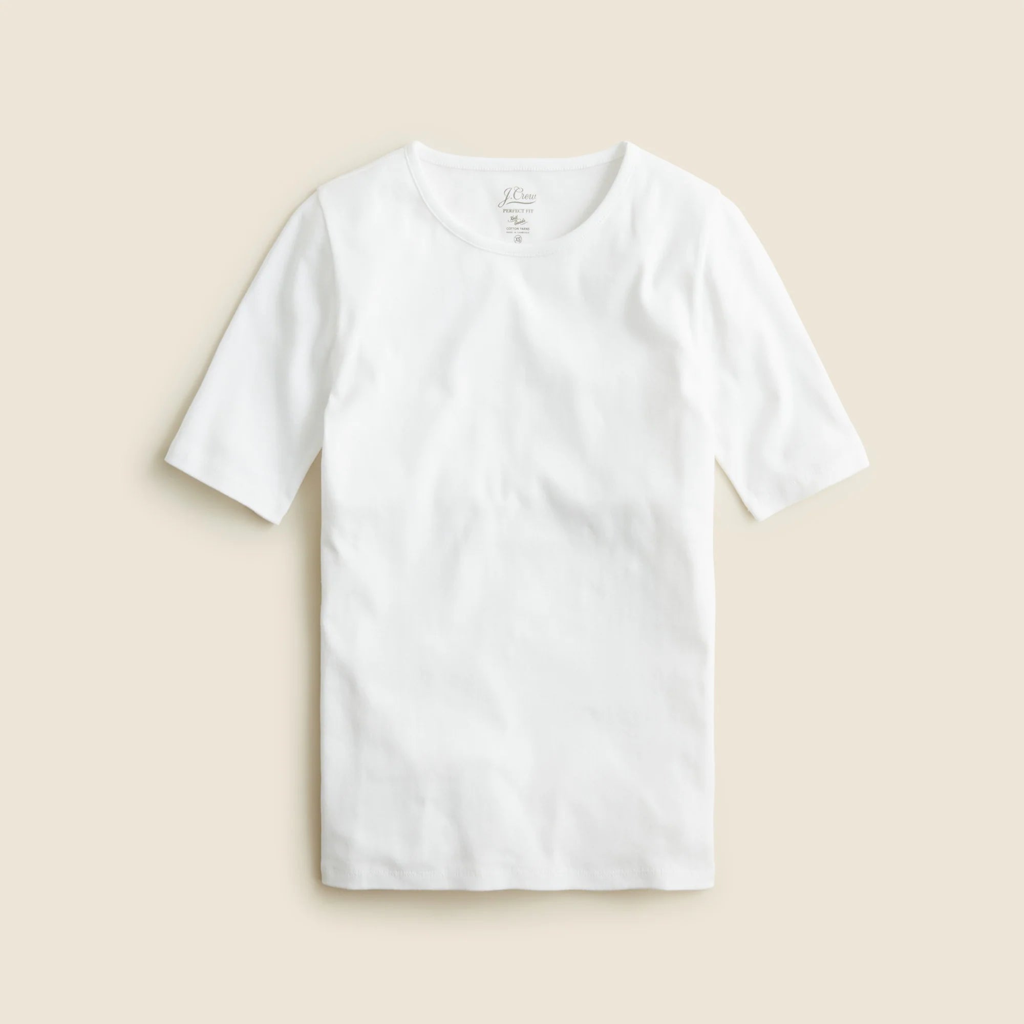 We updated the perfect-fit tee with a slightly shorter length and a sleeve that hits just above the elbow so it's even more, well, perfect. By buying cotton products from J.Crew, you're supporting our investment in Better Cotton's mission to help cotton communities survive and thrive while protecting and restoring the environment. This product is sourced through a system of mass balance and therefore may not contain Better Cotton.