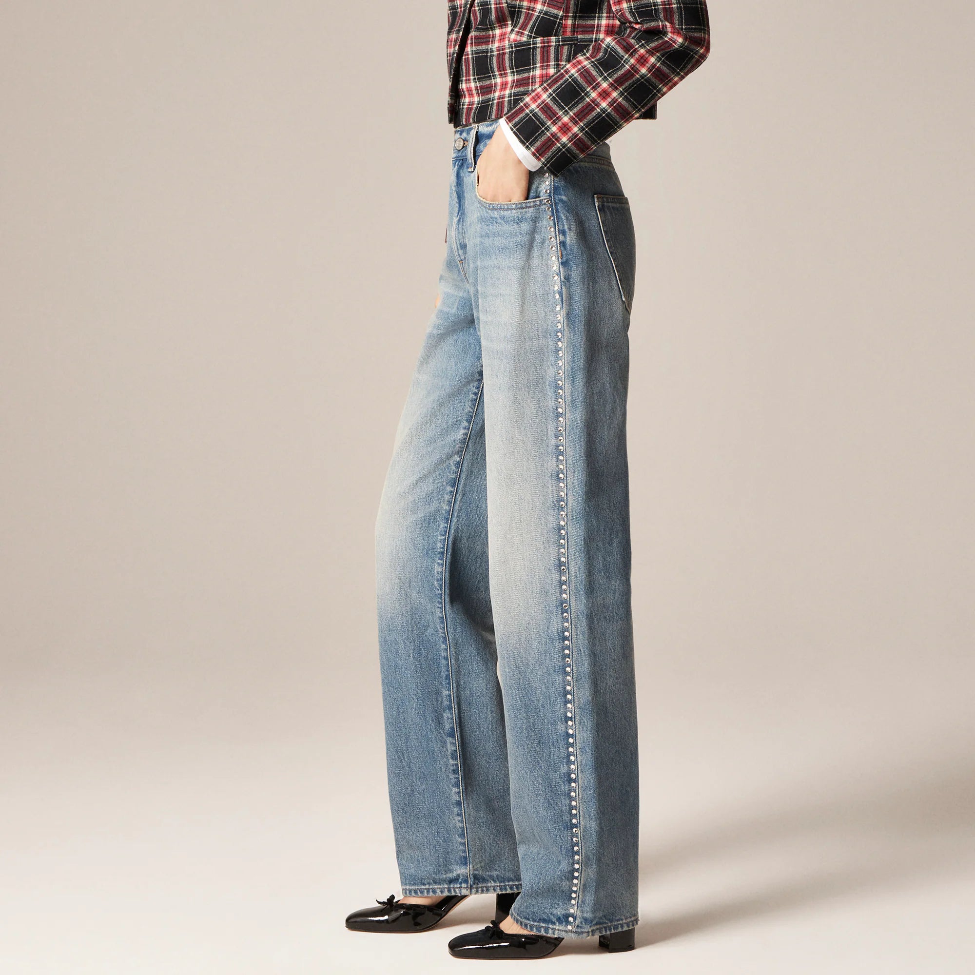 Perfectly relaxed and '80s-inspired—with a sparkling twist. It's easy all the way through, with a true straight leg, a just-right mid-rise and a gemstone stripe down each side seam for a little something extra. Plus, it's crafted from 100 percent cotton denim with no added stretch for a vintage look and feel that molds to your shape over time (aka only gets better with every wear).