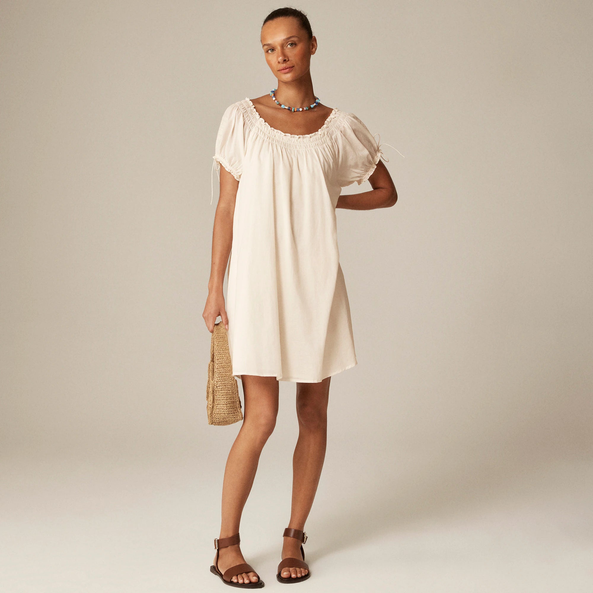 Effortless, airy and delicately detailed. This swingy style is smocked along the neckline and comes with pretty embroidery along the sleeves, plus functional ties that can be worn loose or cinched.