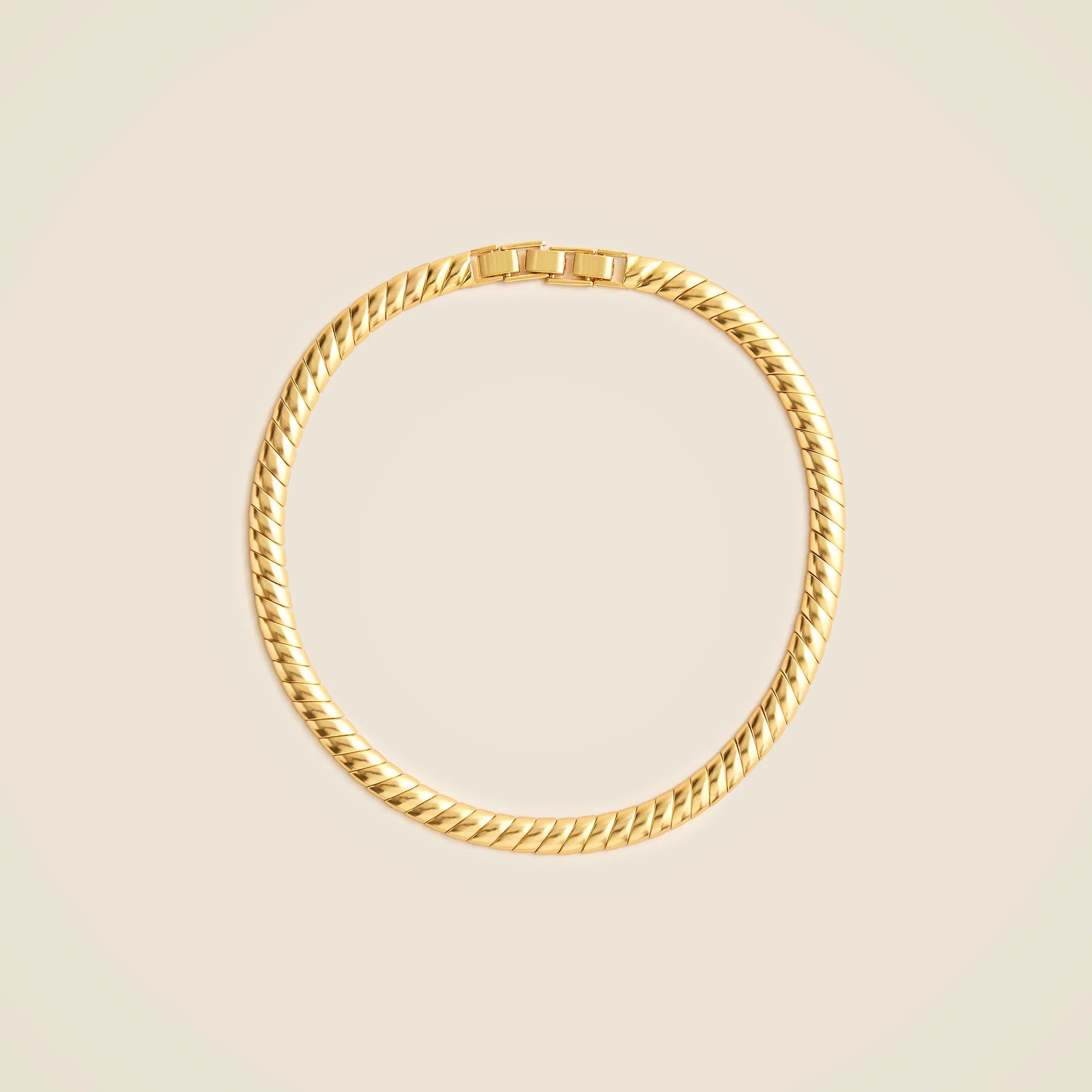We're loving vintage-inspired snake chains this season. . .and this light-reflecting necklace is one of our favorite takes. Detail we extra-love: the double-clasp closure for adjusting the length. Want to keep your jewelry looking like new? We recommend removing it before showering or exercise and putting it on after applying hair products or perfume. To clean your pieces, polish them with a soft, dry cloth—and when not wearing, store them in a pouch or jewelry case.