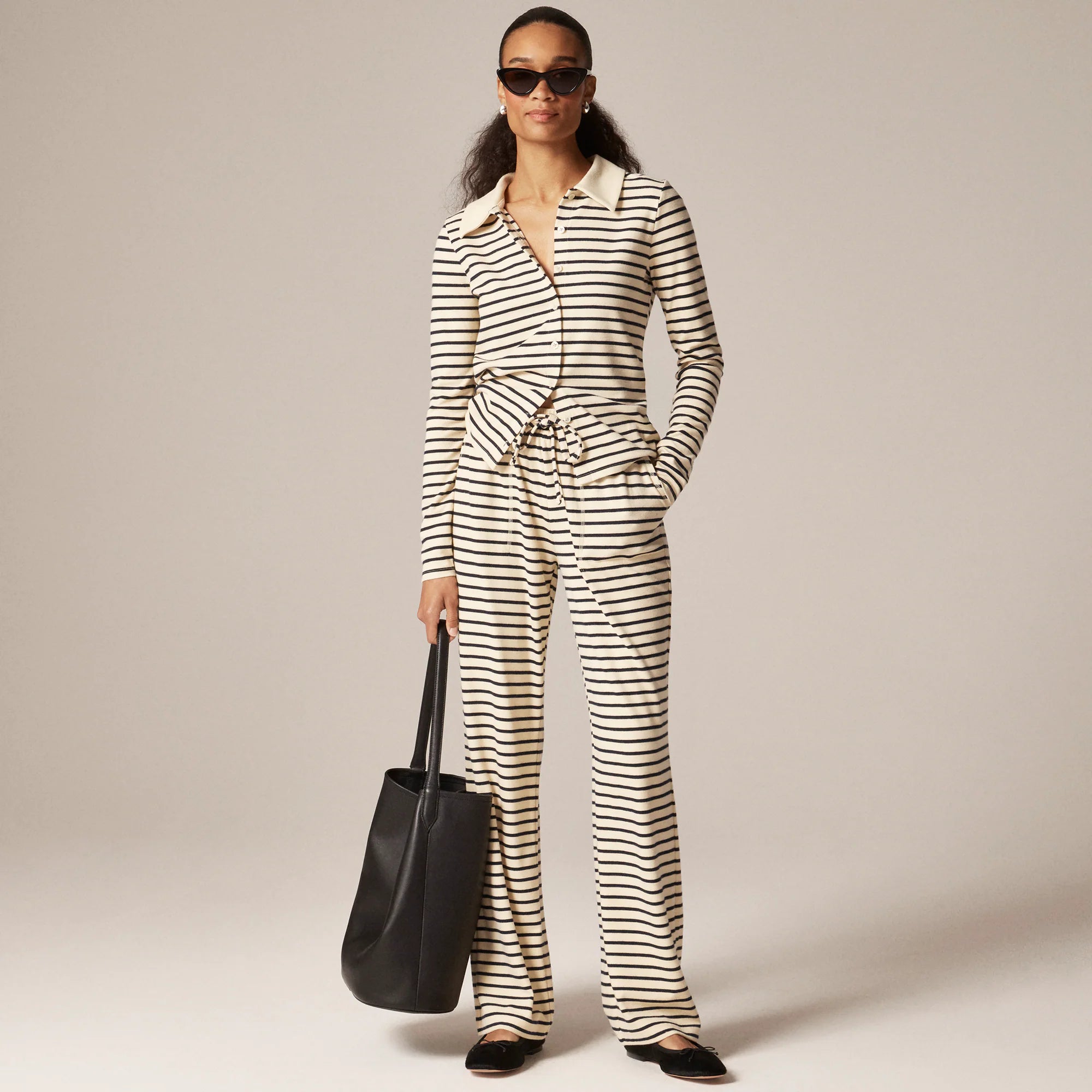 For lounge days and going-out days alike. . .Crafted from subtly ribbed fabric with a luxe, heavier-weight handfeel, it's relaxed all the way through with an adjustable drawstring at the waist. Pro tip: It pairs perfectly with the matching soft rib cardigan top for a refined-yet-cozy look.