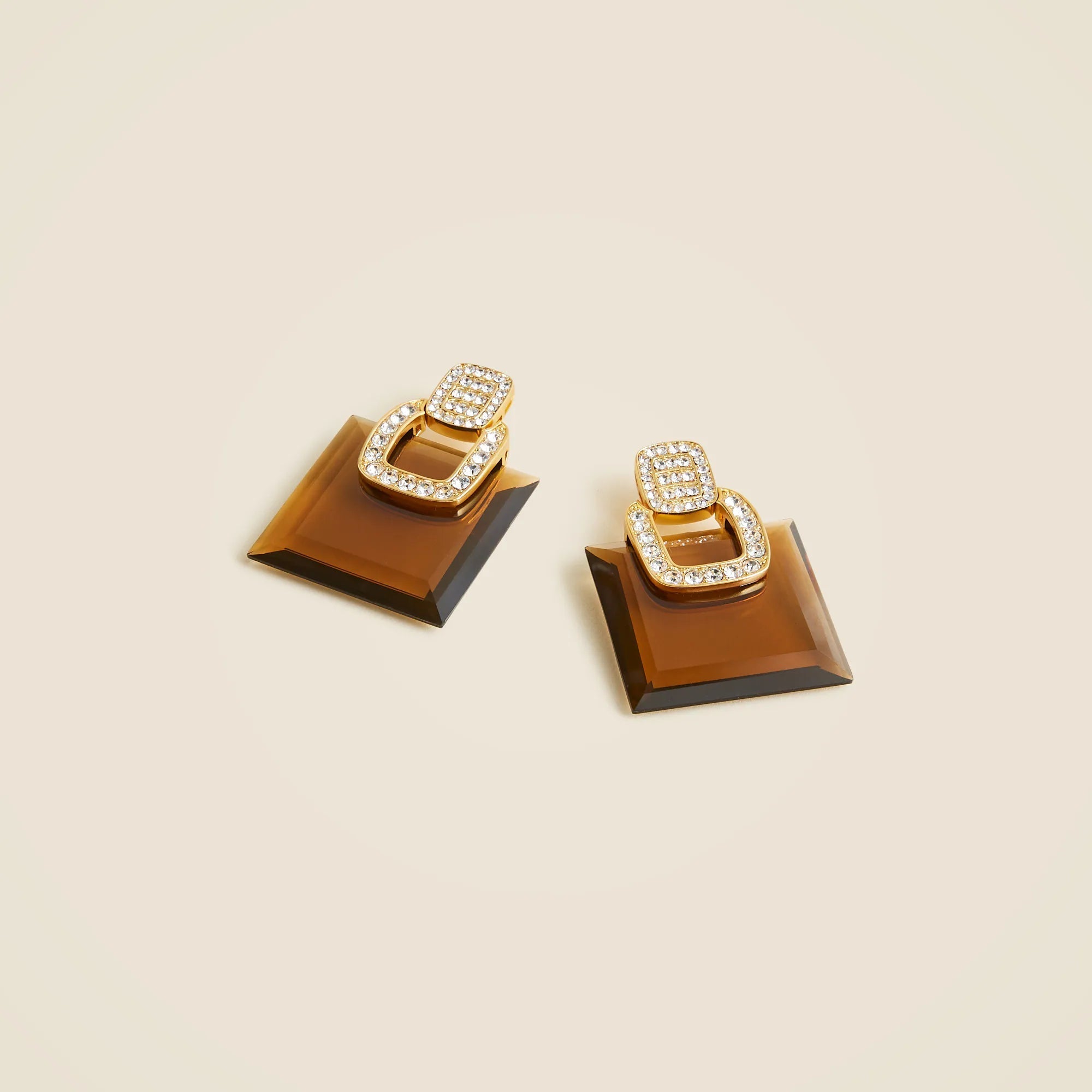 A wearable work of art. These square earrings feature an art deco–inspired design and glass crystals for the perfect amount of sparkle. Feel-good fact: This style was made using eco-friendly recycled-brass casting. Want to keep your jewelry looking like new? We recommend removing it before showering or exercise and putting it on after applying hair products or perfume. To clean your pieces, polish them with a soft, dry cloth—and when not wearing, store them in a pouch or jewelry case.
