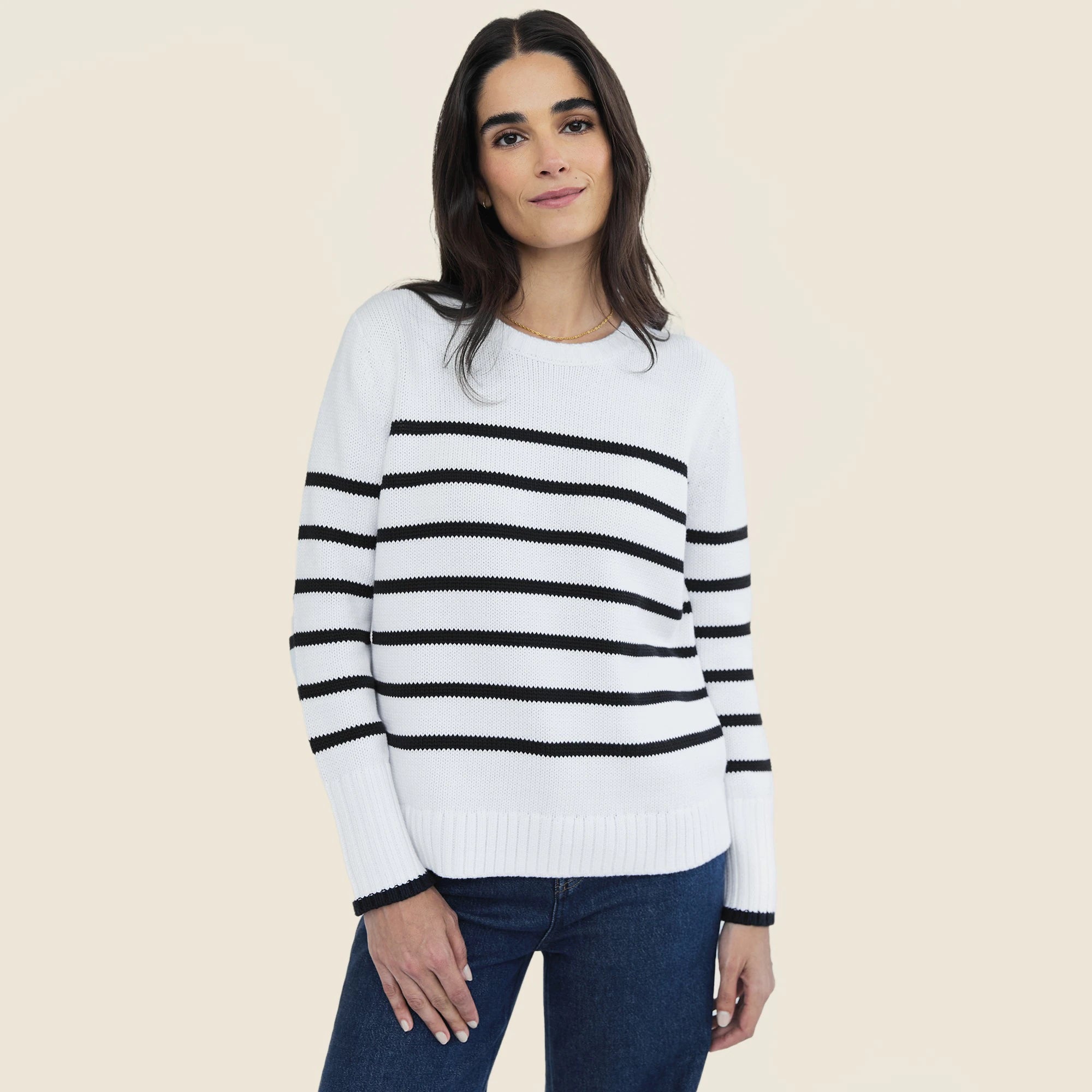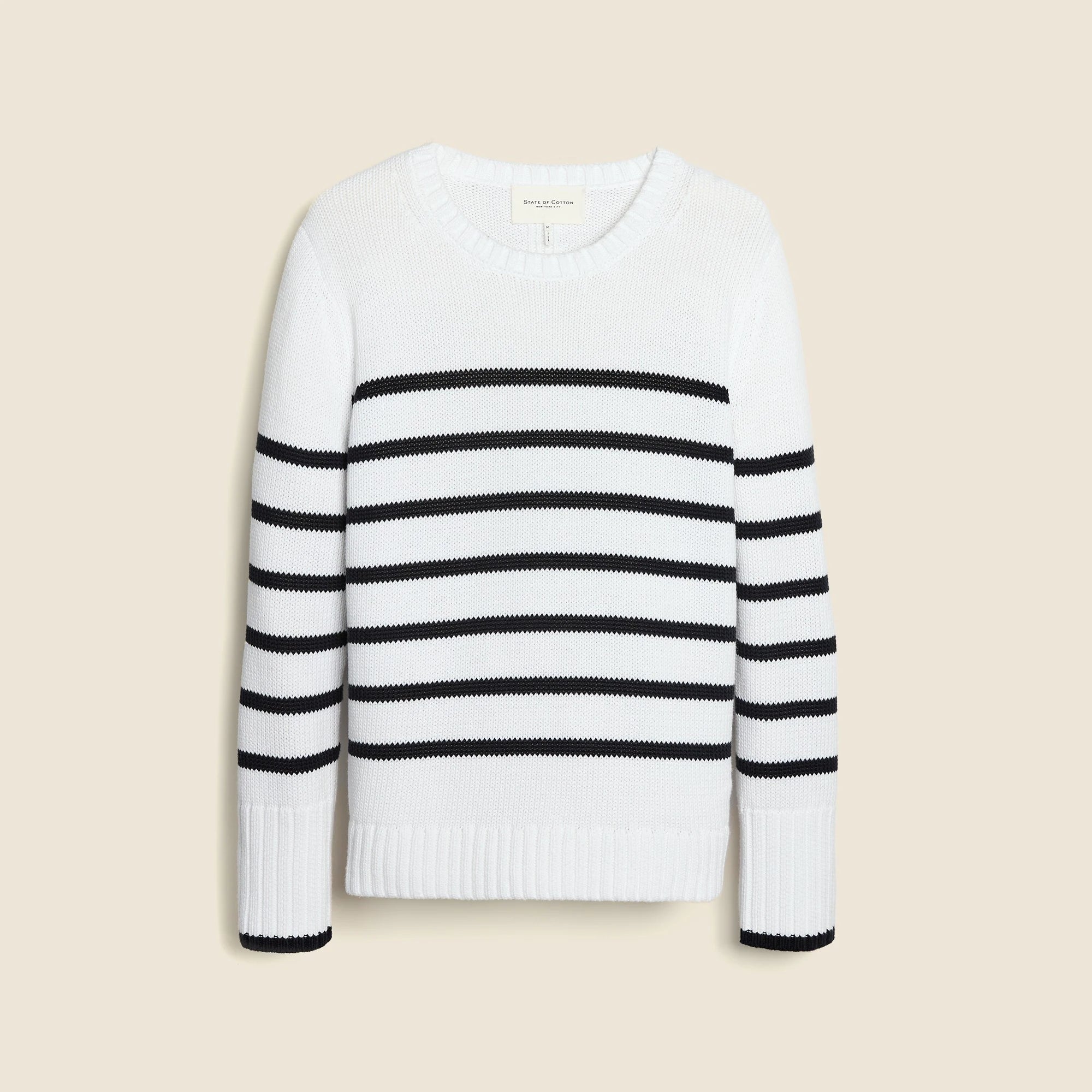 State of Cotton NYC was founded as a solution for those who have skin sensitivity to wool and cashmere. It is the intersection of luxury and simplicity in 100 percent cotton, offering classic silhouettes expertly knit from the highest-quality Italian-spun cotton. Our most versatile crewneck in a classic stripe is designed to be dressed up or down. This new yarn is the perfect combination of soft and polished.