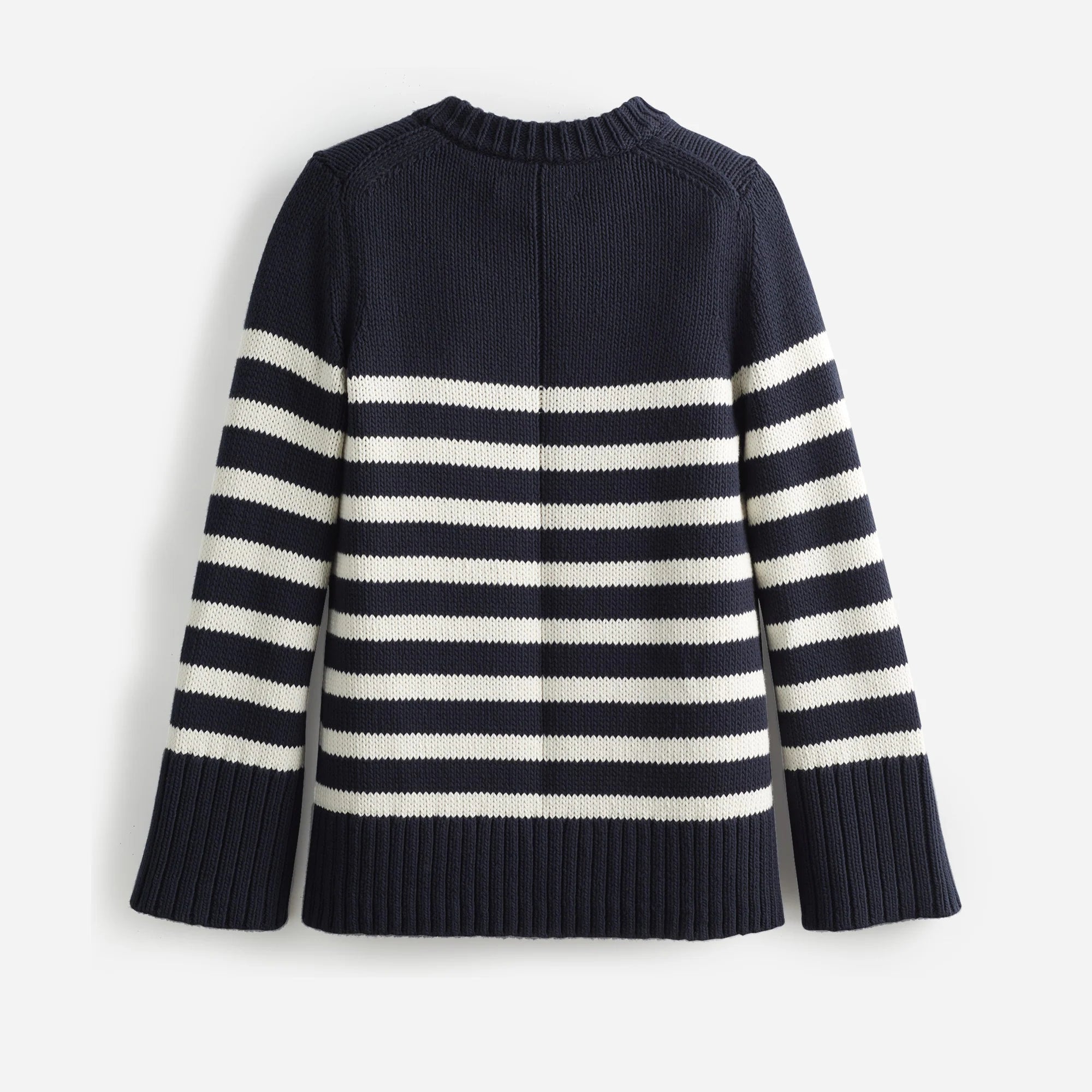 State of Cotton NYC was founded as a solution for those who have skin sensitivity to wool and cashmere. It is the intersection of luxury and simplicity in 100 percent cotton, offering classic silhouettes expertly knit from the highest-quality Italian-spun cotton. Our loftiest sweater with a modern bell sleeve is perfect for all seasons. Kittery is breathable and hypoallergenic with a plush hand, and is always soft against your skin. Its made from Turkish cotton and spun in Italy.