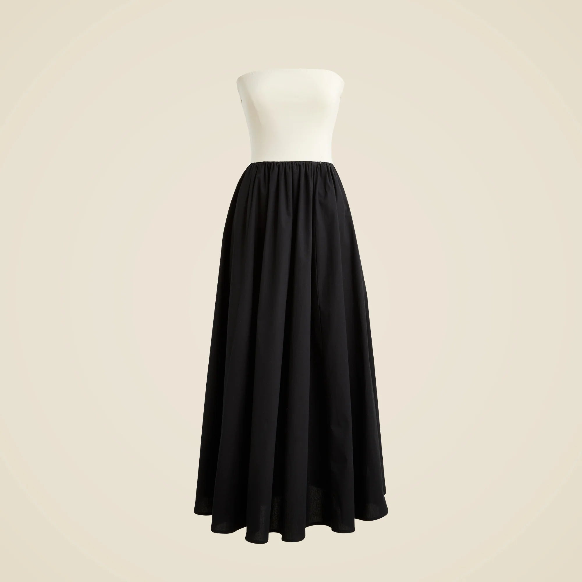An instant classic that's all about contrast. This strapless style is fitted up top, with a crisp A-line skirt for a mix of textures that feels effortless. Plus, it has pockets!