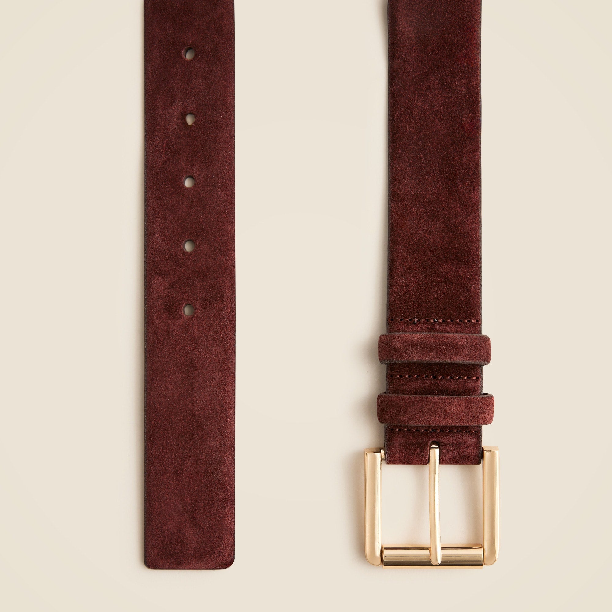 An everyday workwear-inspired essential. This classic roller buckle belt in suede features custom-developed hardware for a unique touch.