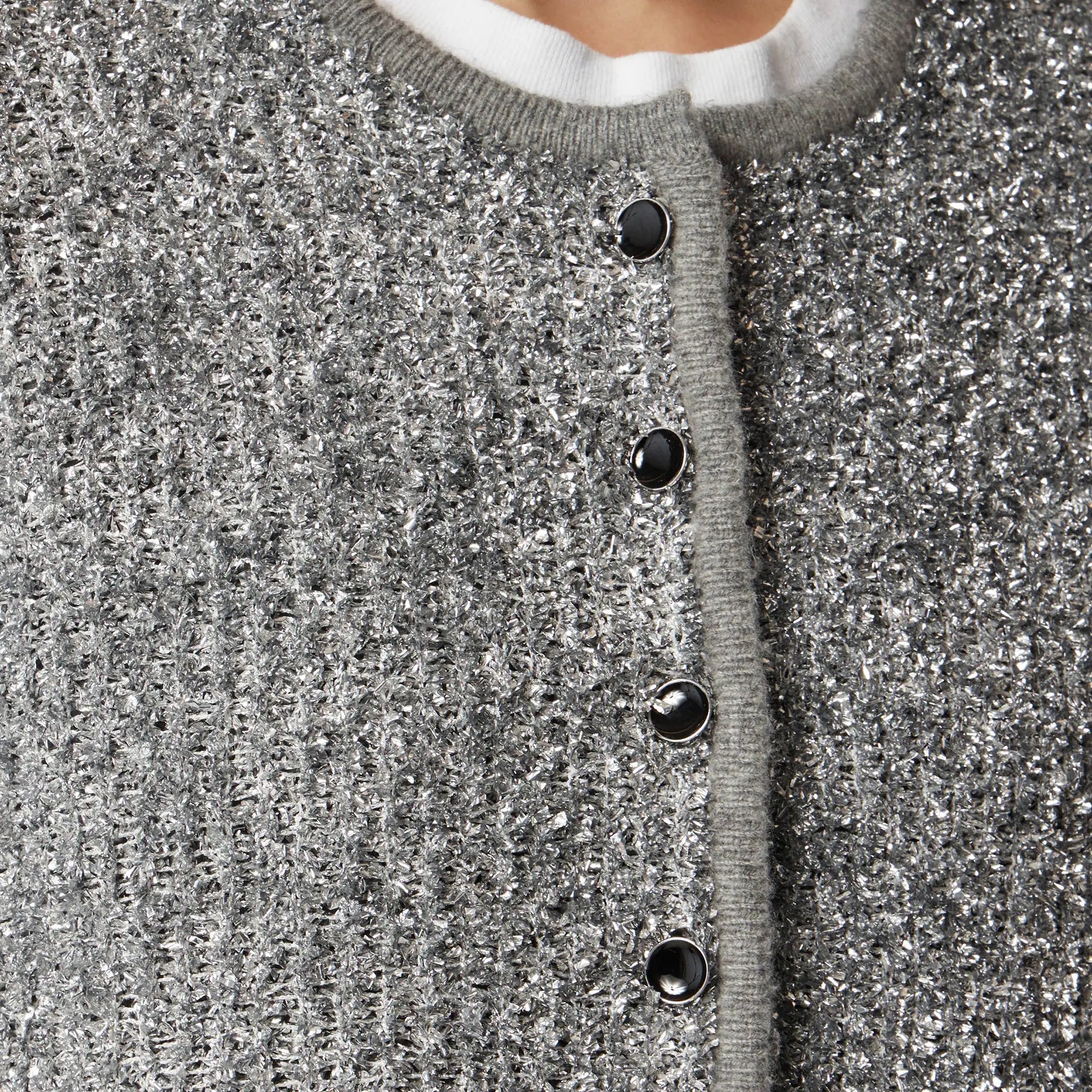 Sparkling and statement-making. . . A party-ready layer we love, crafted from metallic tinsel yarn in our signature lady jacket silhouette. P.S. The color of this product may transfer to other objects, so try to avoid making contact with light colored surfaces and handle with care.