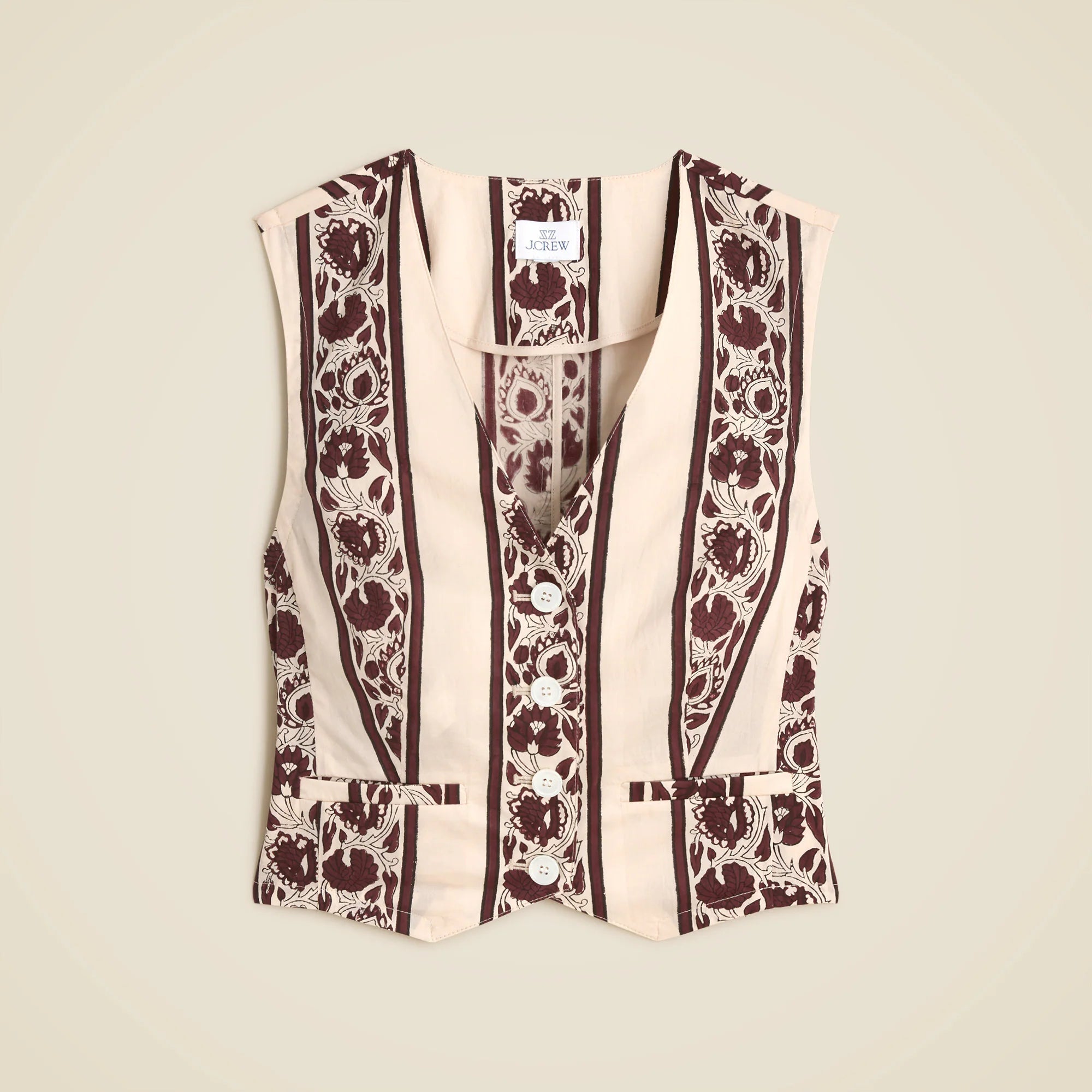 Handmade and one of a kind. SZ Blockprints founder and designer, Sarah Zellweger, works with a team of local artisans in Jaipur, India, to create her signature vibrant block prints. This versatile vest fits straight through the body, with a subtly cropped length that hits at the waistline.