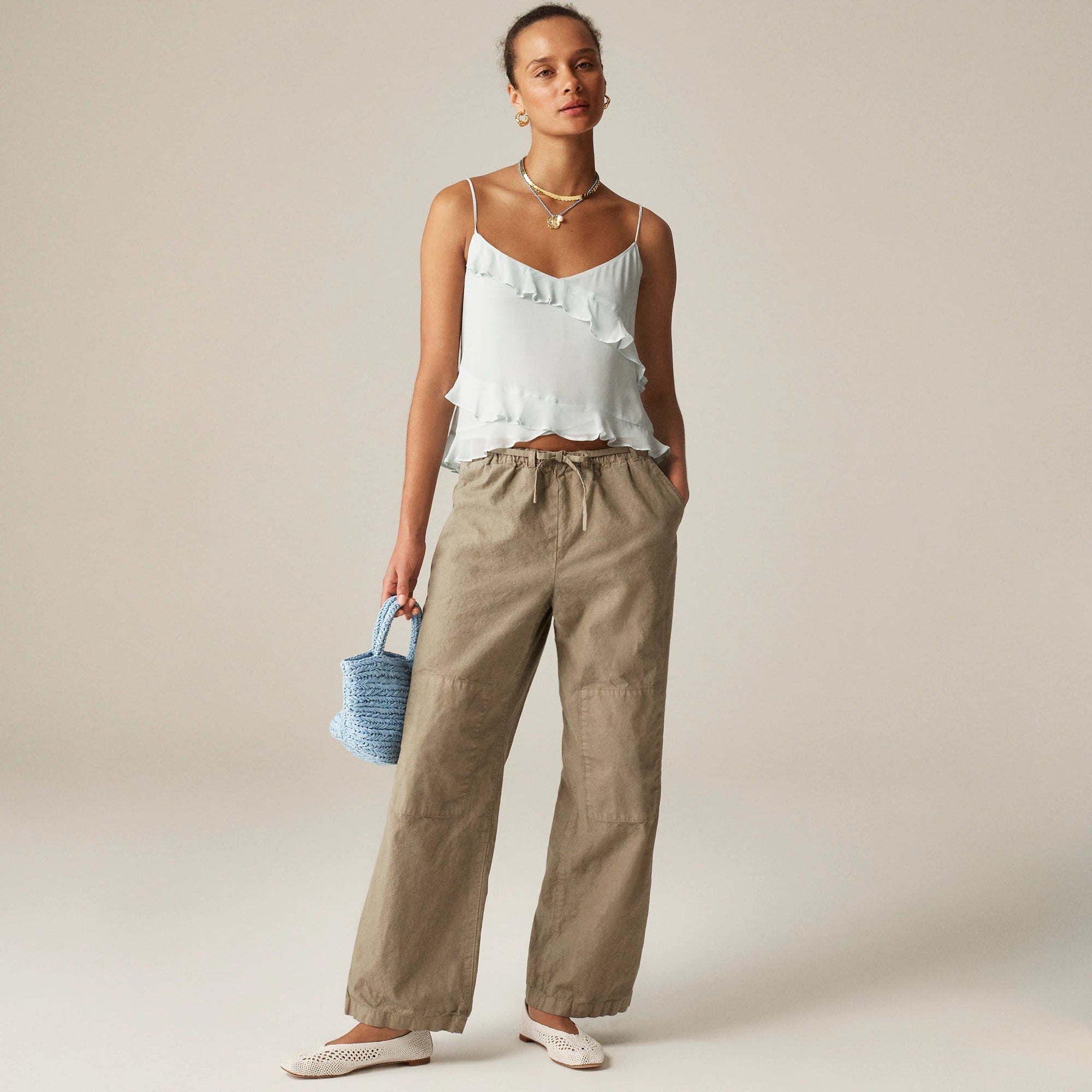 Utility made modern. Crafted in a lightweight cotton blend, this pant comes with oversized patch details at the knees and an adjustable drawstring at the waist that's visible in the front but hidden in the back.