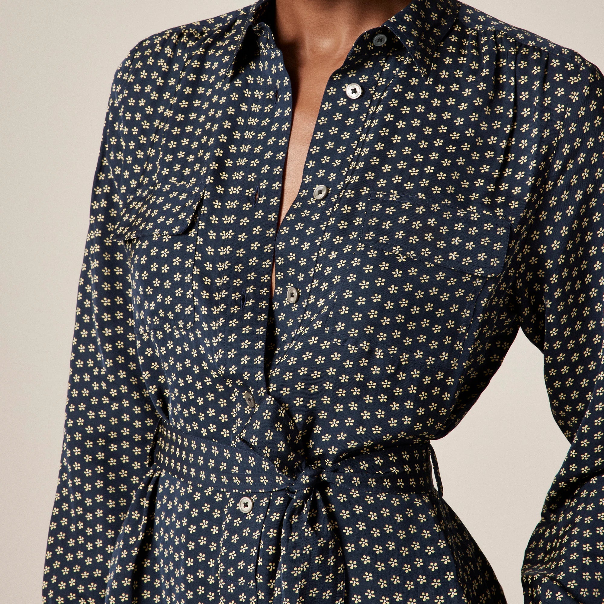 Your weekday uniform. This polished shirt-dress brings all the best details—like a crisp collar, utility-inspired pockets and a tie belt that cinches at the waist—and softens them with an easy, drapey quality, plus a playful floral print. Crafted from smooth, silk-like viscose twill, it's the kind of dress that works just as well for office hours or after-hours.