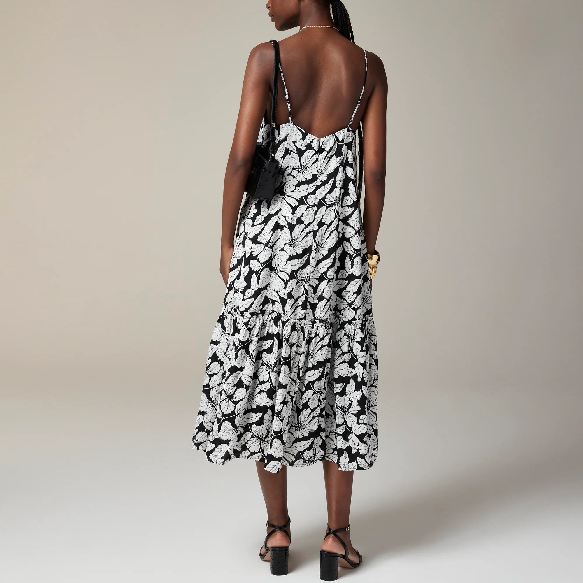 One of our most versatile dresses yet. . .This easy, pretty style features a midi length and a flowy silhouette that can easily be dressed up or down, depending on the occasion. Detail we love: the exaggerated tiered hem that's decidedly feminine.