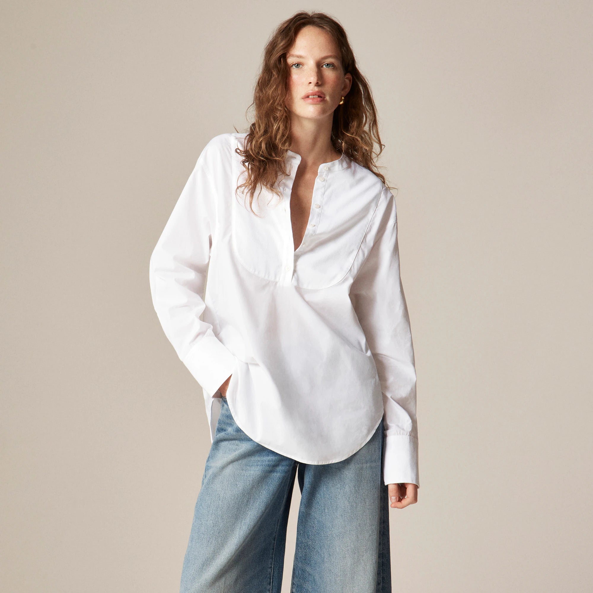 A fresh spin on a timeless tuxedo silhouette. This popover comes with a bib detail at the front, a collarless fit and a longer length for easy sophistication. Plus, it's made from crisp customer-favorite cotton poplin for that neat, just-pressed look and feel.