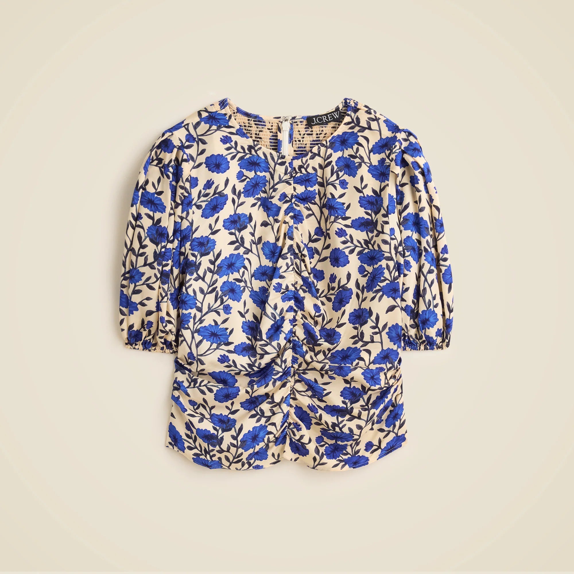 Sweet and vintage-inspired. This day-to-night top comes with ruched details down the front and longer puff sleeves. Plus, it's crafted from soft viscose fabric with a subtle sheen for the perfect amount of polish.