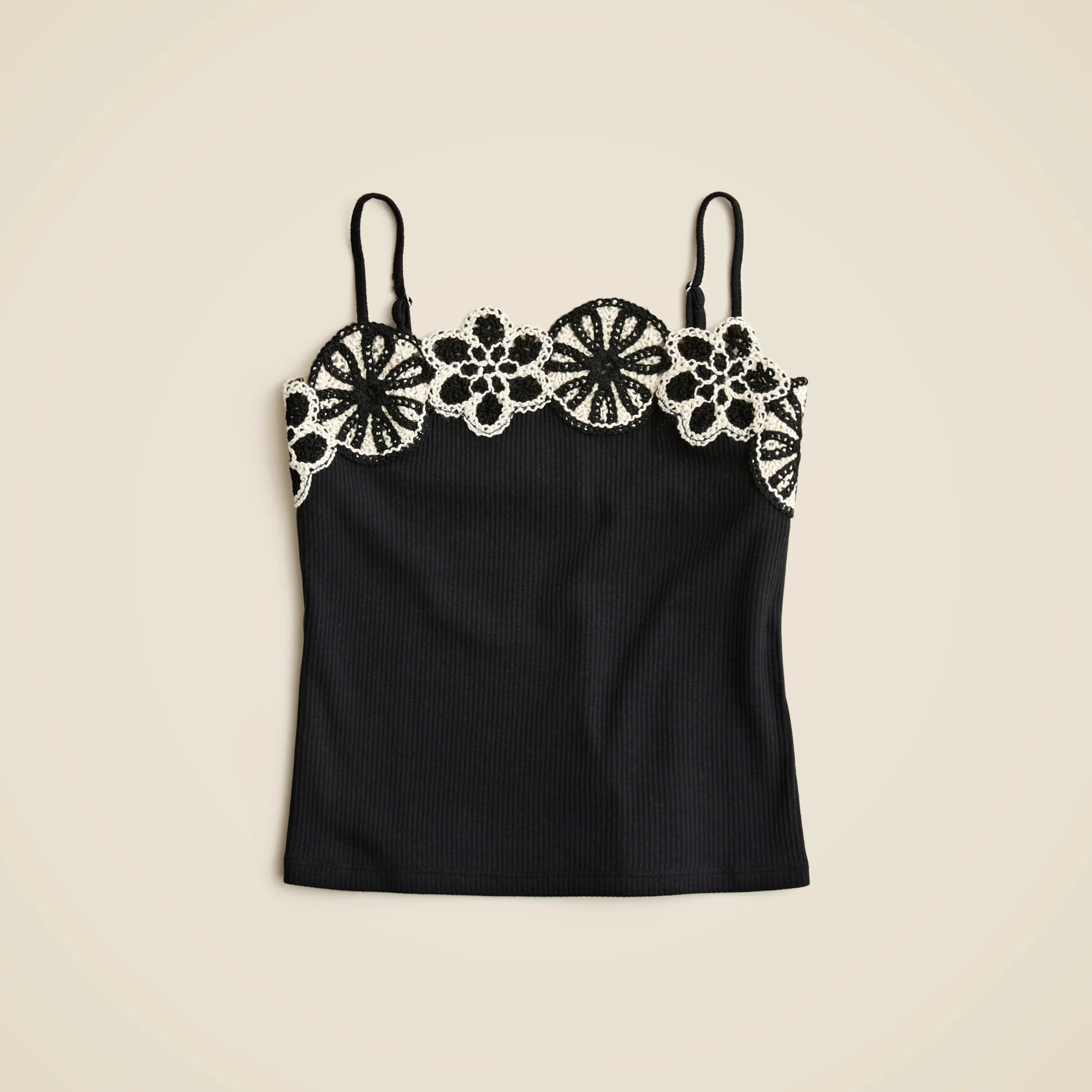 That summer feeling, in top form. This one comes with statement medallion crochet details along the neckline and adjustable straps for the perfect fit. Plus, it's crafted from our vintage rib, a lightweight cotton blend inspired by easy styles of the '70s, with a very soft feel and just a hint of stretch.