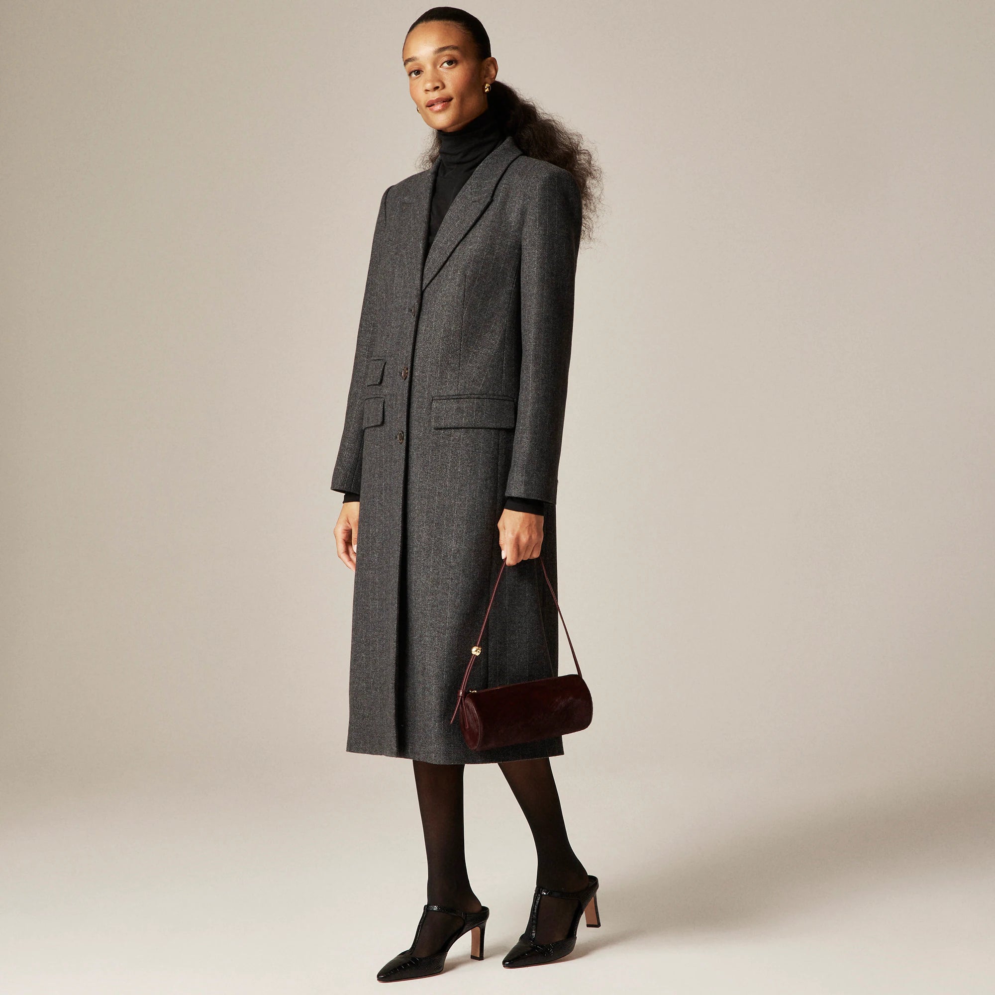 Tailoring, taken to new lengths. This streamlined topcoat nods to classic menswear with sharp lapels, a straight cut and button-front closure, and made a touch more feminine with carefully placed darts down the front. Equal parts polished and practical, it's crafted from a cozy wool blend in a pinstripe pattern from Italian mill Nova Fides, renowned for their durable, premium-quality materials and rich history.